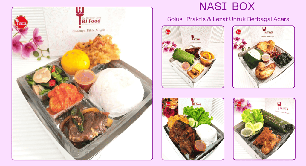 Di tengah kesibukan aktivitas sehari-hari, kebutuhan akan konsumsi praktis, higienis, dan tetap lezat semakin meningkat. Salah satu solusi yang paling banyak dicari adalah nasi box. Mulai dari acara kantor, pengajian, arisan, ulang tahun, hingga event besar, nasi box menjadi pilihan favorit karena praktis, rapi, dan siap santap.