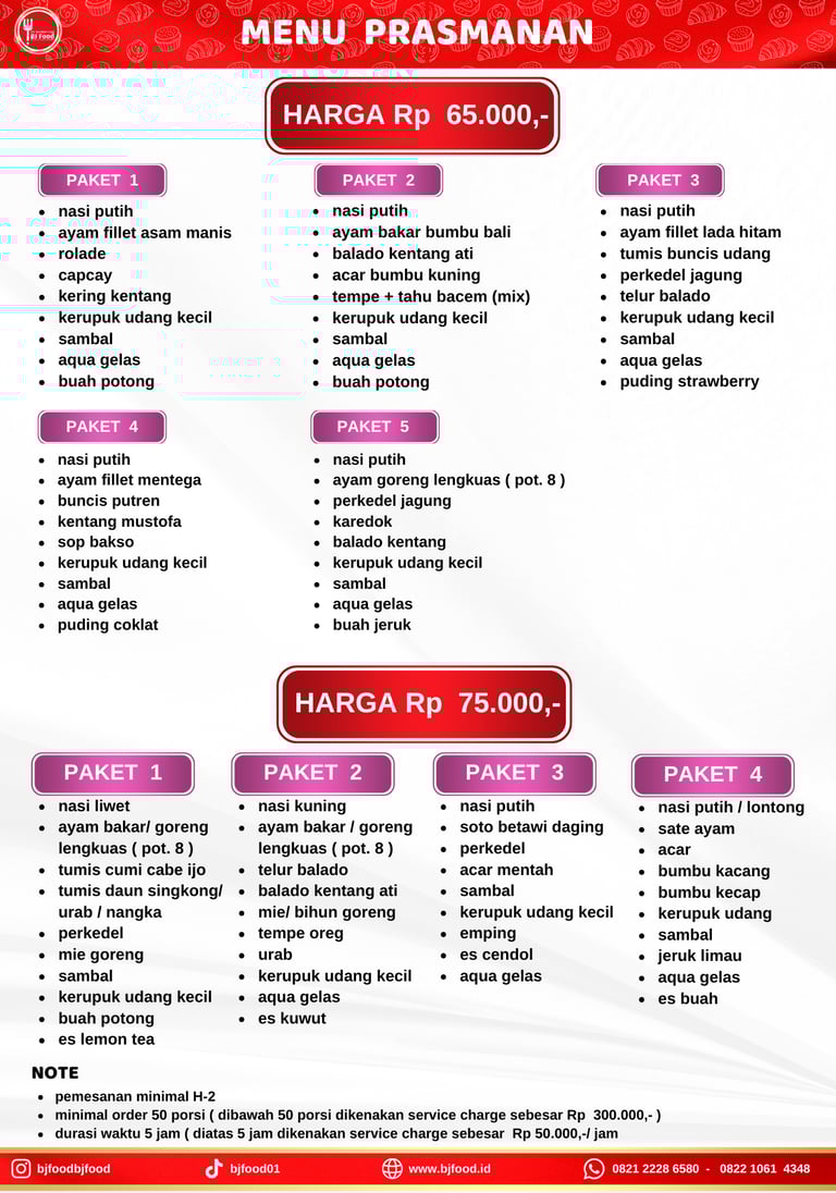 Pricelist BJ Food